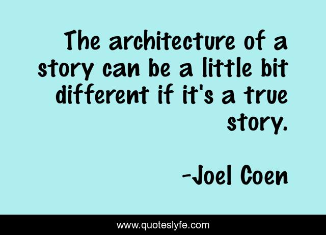 This page presents the quote "The architecture of a story can be a little bit different if it's a true story.". Author of this quote is Joel Coen. This quote is about story, true, little,.