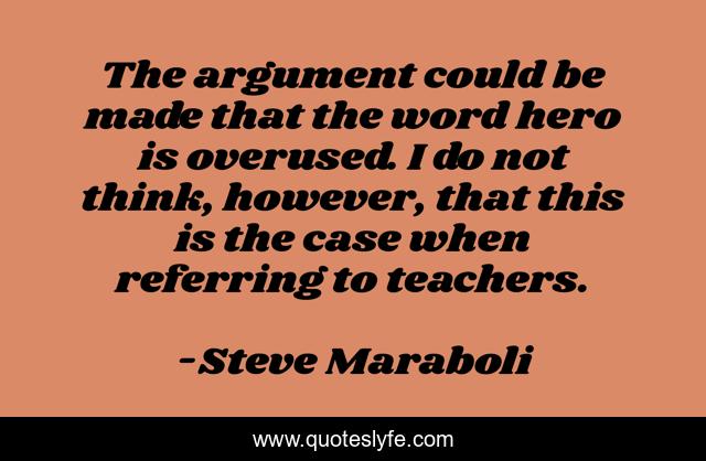 This page presents the quote "The argument could be made that the word hero is overused. I do not think, however, that this is the case when referring to teachers.". Author of this quote is Steve Maraboli. This quote is about hero, teachers,.