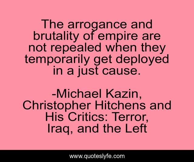 "Michael Kazin, Christopher Hitchens and His Critics: Terror, Iraq, and the Left Quotes." Quoteslyfe.com, 2025. Sat. 06 Dec. 2025. <https://www.quoteslyfe.com/quote/The-arrogance-and-brutality-of-empire-are-52528>.