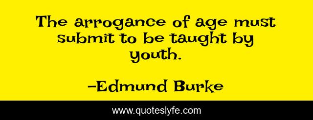 This page presents the quote "The arrogance of age must submit to be taught by youth.". Author of this quote is Edmund Burke. This quote is about youth, submit, arrogance,.