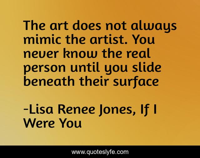 This page presents the quote "The art does not always mimic the artist. You never know the real person until you slide beneath their surface". Author of this quote is Lisa Renee Jones, If I Were You. This quote is about art, artist,.