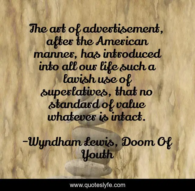 "Wyndham Lewis, Doom Of Youth Quotes." Quoteslyfe.com, 2025. Fri. 05 Dec. 2025. <https://www.quoteslyfe.com/quote/The-art-of-advertisement-after-the-American-191824>.
