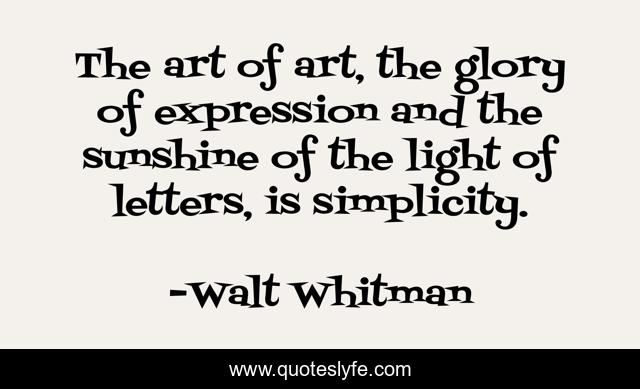 This page presents the quote "The art of art, the glory of expression and the sunshine of the light of letters, is simplicity.". Author of this quote is Walt Whitman. .