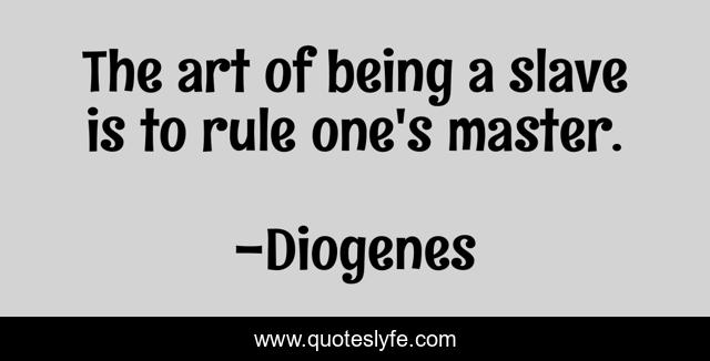 This page presents the quote "The art of being a slave is to rule one's master.". Author of this quote is Diogenes. This quote is about being, master, slave,.
