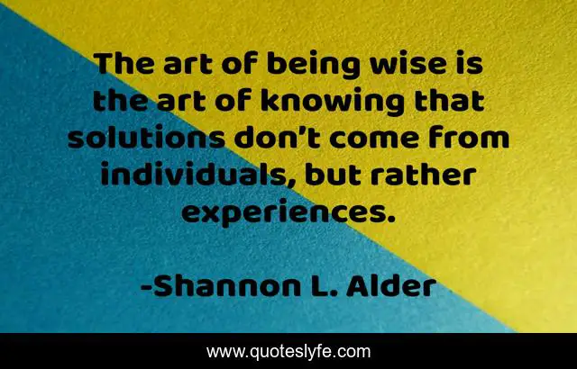 This page presents the quote "The art of being wise is the art of knowing that solutions don’t come from individuals, but rather experiences.". Author of this quote is Shannon L. Alder. This quote is about experiences, growth, problems, solutions, answers,.