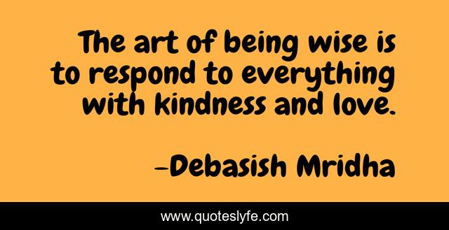 This page presents the quote "The art of being wise is to respond to everything with kindness and love.". Author of this quote is Debasish Mridha. This quote is about how-to-be-wise, kindness-and-love, philosophy, debasish-mridha, wisdom, quotes, debasish-mridha-md, inspirational, enthusiasm,.