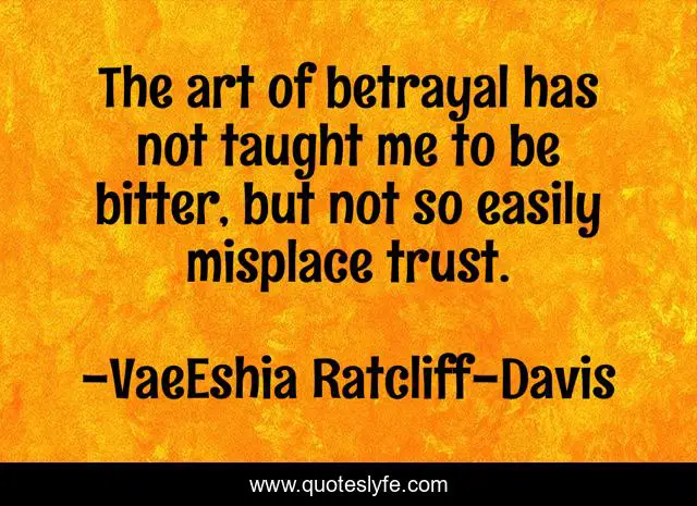 This page presents the quote "The art of betrayal has not taught me to be bitter, but not so easily misplace trust.". Author of this quote is VaeEshia Ratcliff-Davis. This quote is about trust, betrayal,.