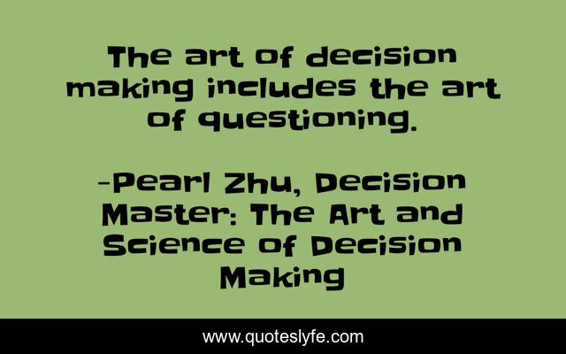 "Pearl Zhu, Decision Master: The Art and Science of Decision Making Quotes." Quoteslyfe.com, 2025. Fri. 05 Dec. 2025. <https://www.quoteslyfe.com/quote/The-art-of-decision-making-includes-the-255389>.
