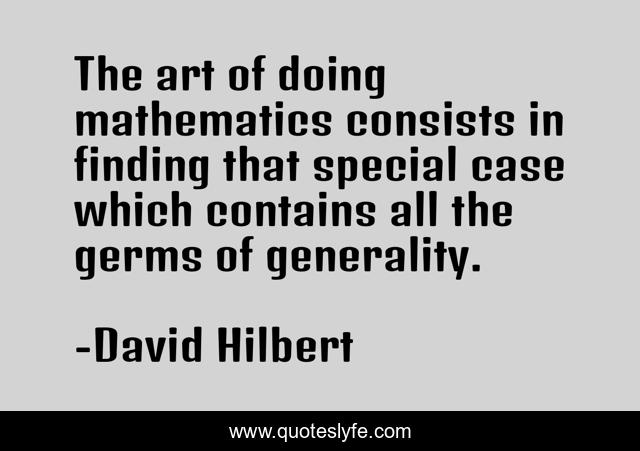 This page presents the quote "The art of doing mathematics consists in finding that special case which contains all the germs of generality.". Author of this quote is David Hilbert. This quote is about finding, mathematics,.
