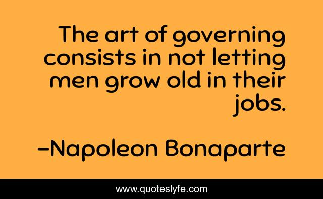 This page presents the quote "The art of governing consists in not letting men grow old in their jobs.". Author of this quote is Napoleon Bonaparte. This quote is about rule, government,.