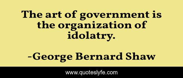 This page presents the quote "The art of government is the organization of idolatry.". Author of this quote is George Bernard Shaw. This quote is about rule, government,.