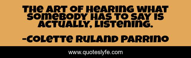 This page presents the quote "The art of hearing what somebody has to say is actually, listening.". Author of this quote is Colette Ruland Parrino. This quote is about morals-love, listening,.