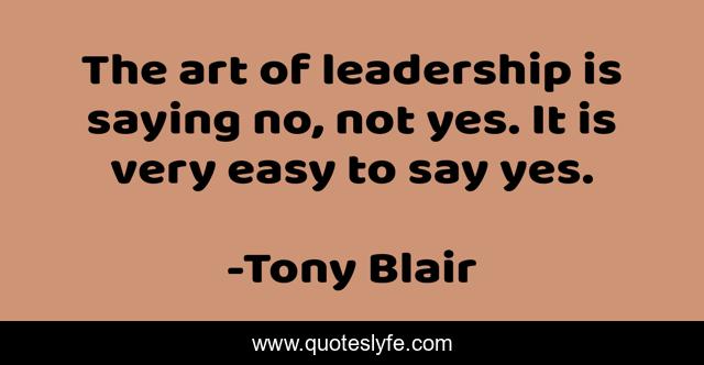 "Tony Blair Quotes." Quoteslyfe.com, 2025. Sat. 06 Dec. 2025. <https://www.quoteslyfe.com/quote/The-art-of-leadership-is-saying-no-63912>.