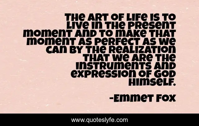 This page presents the quote "The art of life is to live in the present moment and to make that moment as perfect as we can by the realization that we are the instruments and expression of God himself.". Author of this quote is Emmet Fox. This quote is about god, life, christianity, expression, religion,.