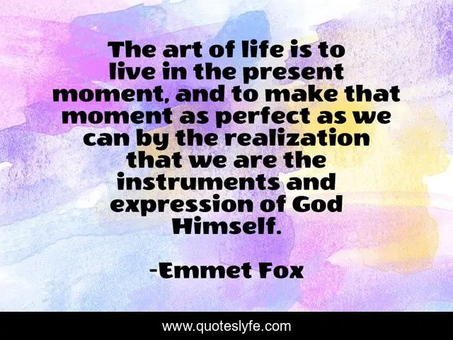 This page presents the quote "The art of life is to live in the present moment, and to make that moment as perfect as we can by the realization that we are the instruments and expression of God Himself.". Author of this quote is Emmet Fox. This quote is about god, life, moment,.