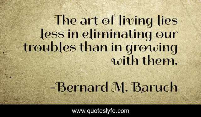 This page presents the quote "The art of living lies less in eliminating our troubles than in growing with them.". Author of this quote is Bernard M. Baruch. .