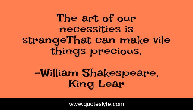 This page presents the quote "The art of our necessities is strangeThat can make vile things precious.". Author of this quote is William Shakespeare, King Lear. This quote is about need, despair, necessity, misery,.