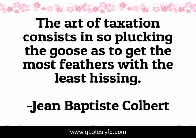 This page presents the quote "The art of taxation consists in so plucking the goose as to get the most feathers with the least hissing.". Author of this quote is Jean Baptiste Colbert. .