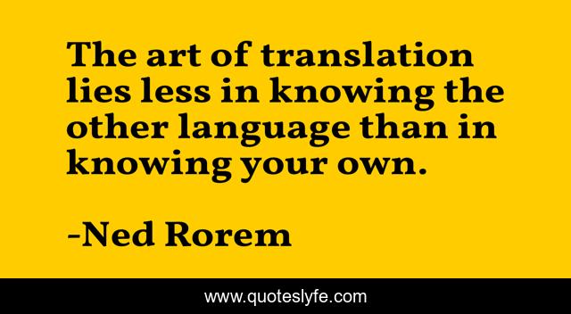 This page presents the quote "The art of translation lies less in knowing the other language than in knowing your own.". Author of this quote is Ned Rorem. This quote is about words, language,.