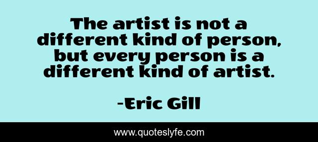 This page presents the quote "The artist is not a different kind of person, but every person is a different kind of artist.". Author of this quote is Eric Gill. This quote is about person, different, artist,.