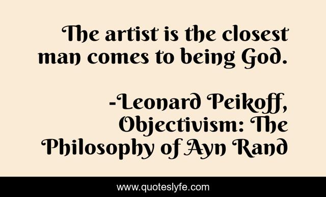This page presents the quote "The artist is the closest man comes to being God.". Author of this quote is Leonard Peikoff, Objectivism: The Philosophy of Ayn Rand. This quote is about god, artist,.