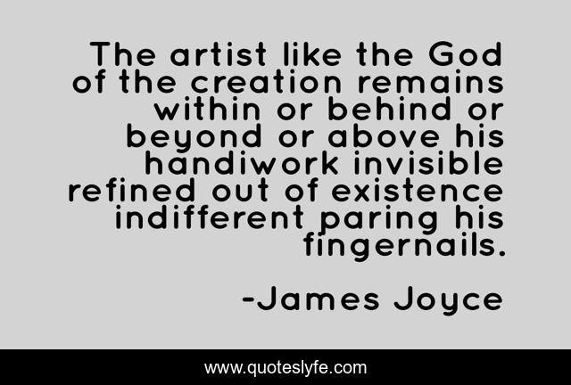 This page presents the quote "The artist like the God of the creation remains within or behind or beyond or above his handiwork invisible refined out of existence indifferent paring his fingernails.". Author of this quote is James Joyce. This quote is about art, artist,.