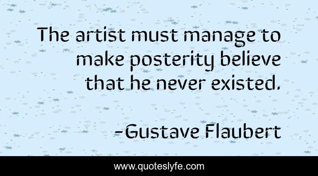 This page presents the quote "The artist must manage to make posterity believe that he never existed.". Author of this quote is Gustave Flaubert. This quote is about artists, writers, art, writing,.