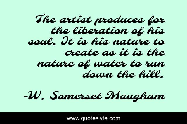 This page presents the quote "The artist produces for the liberation of his soul. It is his nature to create as it is the nature of water to run down the hill.". Author of this quote is W. Somerset Maugham. This quote is about water, art, soul,.