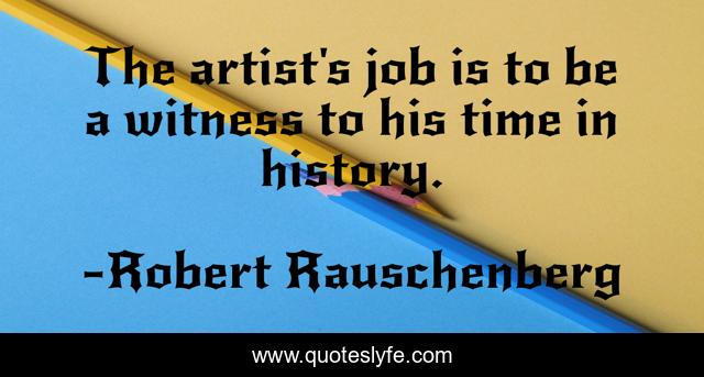 This page presents the quote "The artist's job is to be a witness to his time in history.". Author of this quote is Robert Rauschenberg. This quote is about job, time, history,.