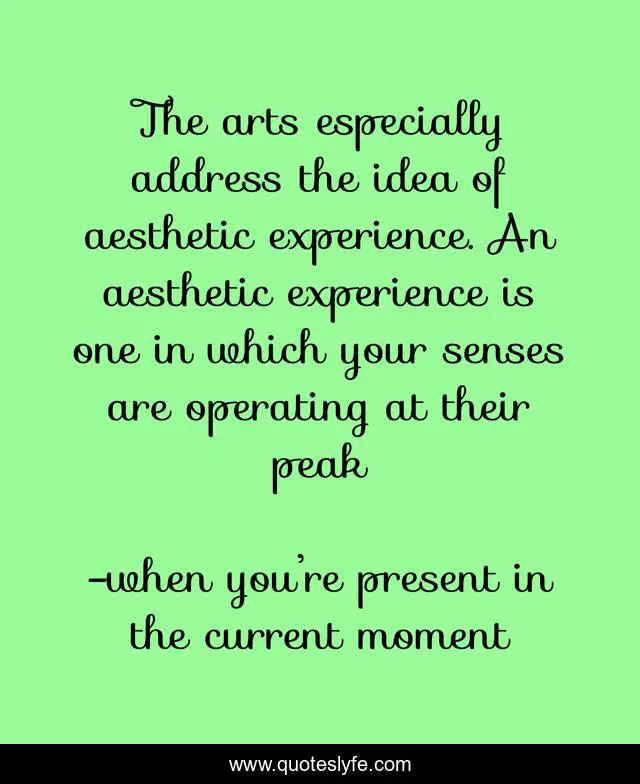 This page presents the quote "The arts especially address the idea of aesthetic experience. An aesthetic experience is one in which your senses are operating at their peak". Author of this quote is when you’re present in the current moment. .