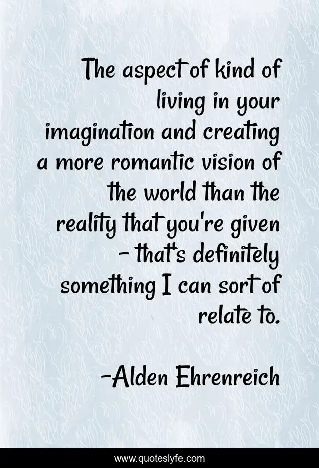 This page presents the quote "The aspect of kind of living in your imagination and creating a more romantic vision of the world than the reality that you're given - that's definitely something I can sort of relate to.". Author of this quote is Alden Ehrenreich. This quote is about world, romantic, vision,.