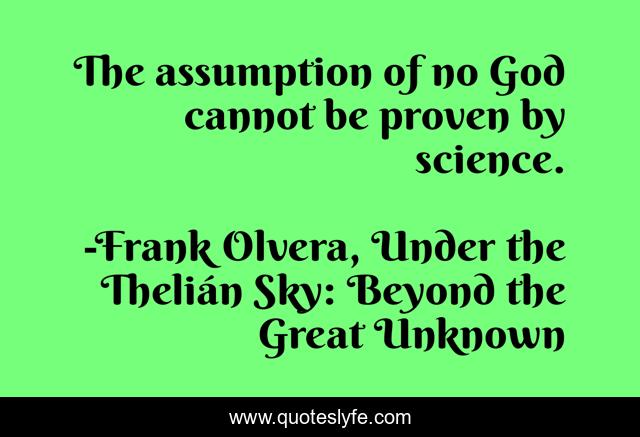 "Frank Olvera, Under the Thelián Sky: Beyond the Great Unknown Quotes." Quoteslyfe.com, 2025. Sun. 07 Dec. 2025. <https://www.quoteslyfe.com/quote/The-assumption-of-no-God-cannot-be-61713>.