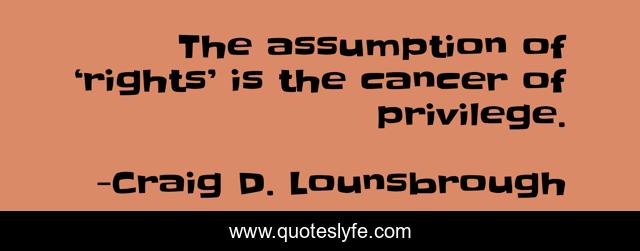 "Craig D. Lounsbrough Quotes." Quoteslyfe.com, 2025. Tue. 09 Dec. 2025. <https://www.quoteslyfe.com/quote/The-assumption-of-rights-is-the-cancer-54875>.