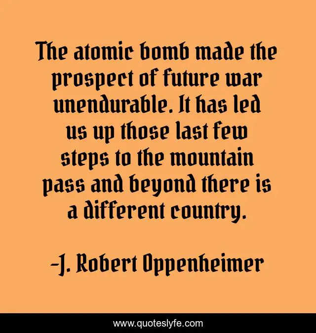 "J. Robert Oppenheimer Quotes." Quoteslyfe.com, 2025. Sat. 06 Dec. 2025. <https://www.quoteslyfe.com/quote/The-atomic-bomb-made-the-prospect-of-285508>.