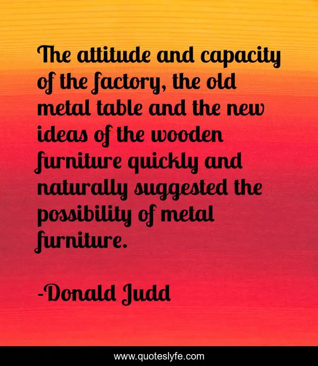 "Donald Judd Quotes." Quoteslyfe.com, 2025. Sat. 06 Dec. 2025. <https://www.quoteslyfe.com/quote/The-attitude-and-capacity-of-the-factory-282533>.