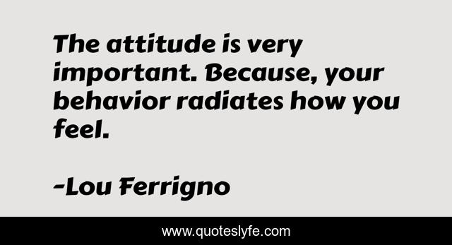 This page presents the quote "The attitude is very important. Because, your behavior radiates how you feel.". Author of this quote is Lou Ferrigno. This quote is about important, behavior,.