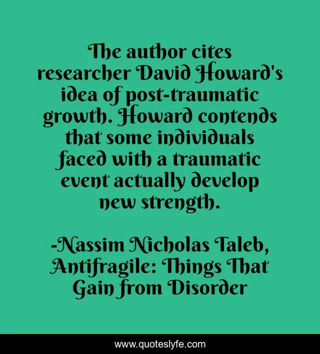 "Nassim Nicholas Taleb, Antifragile: Things That Gain from Disorder Quotes." Quoteslyfe.com, 2025. Sat. 06 Dec. 2025. <https://www.quoteslyfe.com/quote/The-author-cites-researcher-David-Howard-s-205900>.