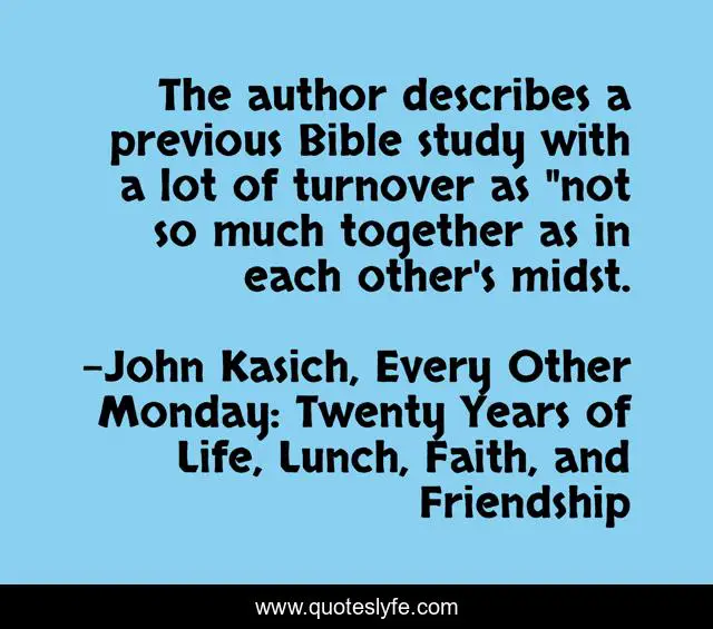 "John Kasich, Every Other Monday: Twenty Years of Life, Lunch, Faith, and Friendship Quotes." Quoteslyfe.com, 2025. Mon. 08 Dec. 2025. <https://www.quoteslyfe.com/quote/The-author-describes-a-previous-Bible-study-206053>.