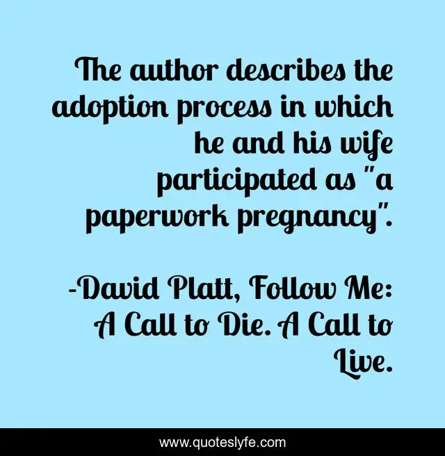 This page presents the quote "The author describes the adoption process in which he and his wife participated as "a paperwork pregnancy".". Author of this quote is David Platt, Follow Me: A Call to Die. A Call to Live.. This quote is about bureaucracy, persistence,.