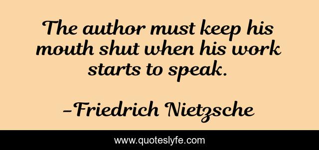 This page presents the quote "The author must keep his mouth shut when his work starts to speak.". Author of this quote is Friedrich Nietzsche. .