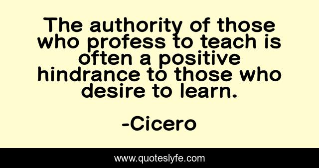 This page presents the quote "The authority of those who profess to teach is often a positive hindrance to those who desire to learn.". Author of this quote is Cicero. This quote is about teaching, teachers,.