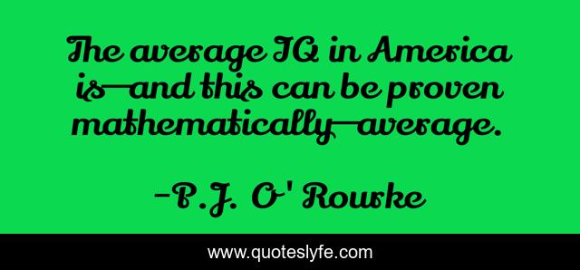 This page presents the quote "The average IQ in America is—and this can be proven mathematically—average.". Author of this quote is P.J. O'Rourke. This quote is about maths, iq-tests, averages, humour,.