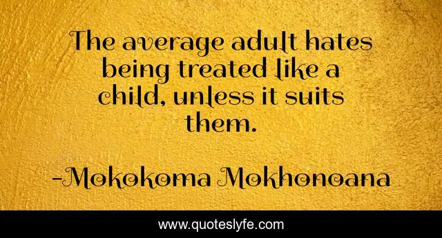 "Mokokoma Mokhonoana Quotes." Quoteslyfe.com, 2025. Mon. 08 Dec. 2025. <https://www.quoteslyfe.com/quote/The-average-adult-hates-being-treated-like-56215>.