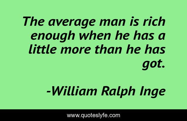 This page presents the quote "The average man is rich enough when he has a little more than he has got.". Author of this quote is William Ralph Inge. .