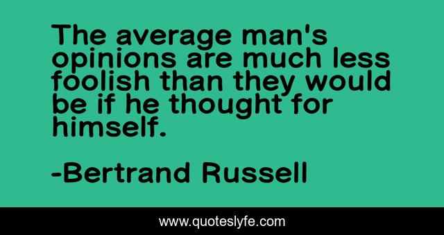 This page presents the quote "The average man's opinions are much less foolish than they would be if he thought for himself.". Author of this quote is Bertrand Russell. This quote is about masses, crowds,.
