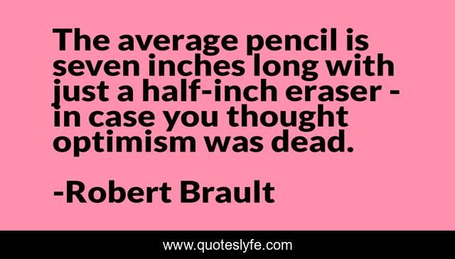 This page presents the quote "The average pencil is seven inches long with just a half-inch eraser - in case you thought optimism was dead.". Author of this quote is Robert Brault. .