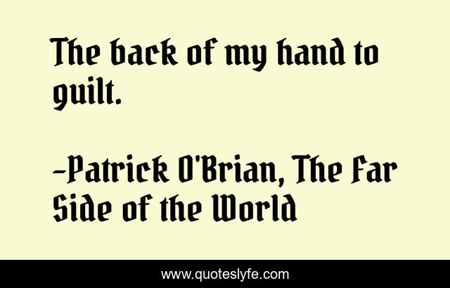 "Patrick O'Brian, The Far Side of the World Quotes." Quoteslyfe.com, 2025. Mon. 08 Dec. 2025. <https://www.quoteslyfe.com/quote/The-back-of-my-hand-to-guilt-223434>.