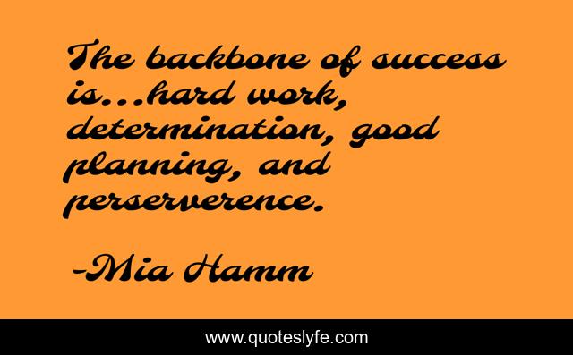 This page presents the quote "The backbone of success is...hard work, determination, good planning, and perserverence.". Author of this quote is Mia Hamm. .