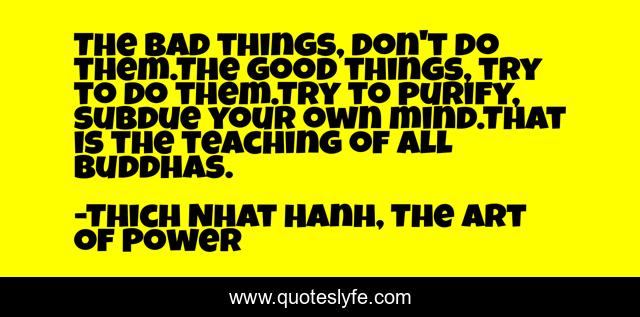 This page presents the quote "The bad things, don't do them.The good things, try to do them.Try to purify, subdue your own mind.That is the teaching of all buddhas.". Author of this quote is Thich Nhat Hanh, The Art of Power. .