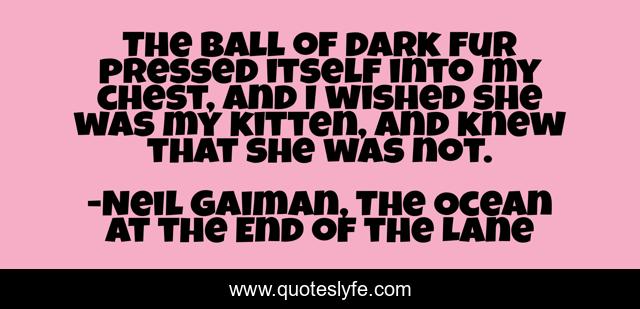 "Neil Gaiman, The Ocean at the End of the Lane Quotes." Quoteslyfe.com, 2025. Fri. 05 Dec. 2025. <https://www.quoteslyfe.com/quote/The-ball-of-dark-fur-pressed-itself-222786>.